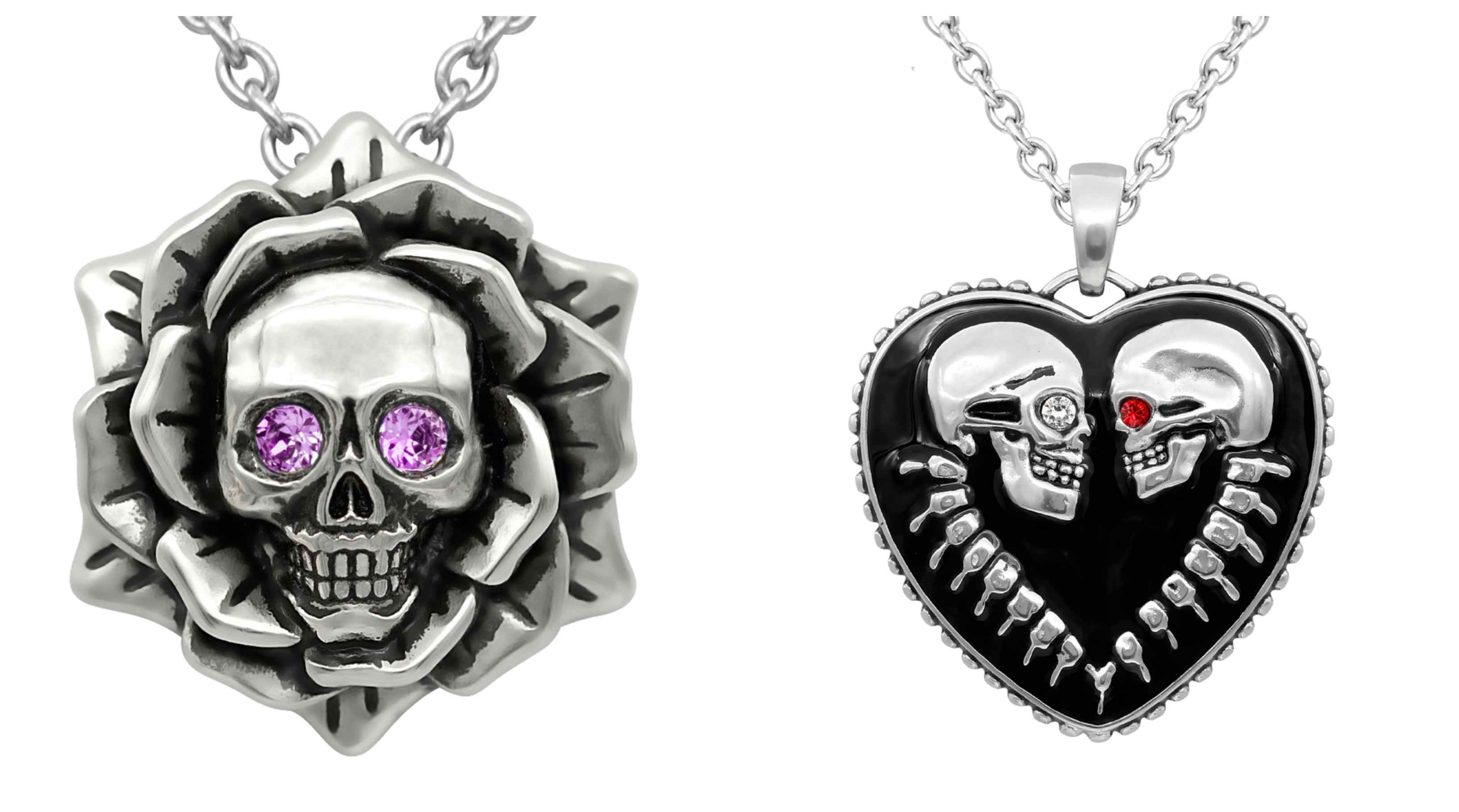 Skull Rose Birthstone Necklace with Swarovski Crystal & Bound for Eternity Skull Heart Necklace both made of stainless steel from Controse shop